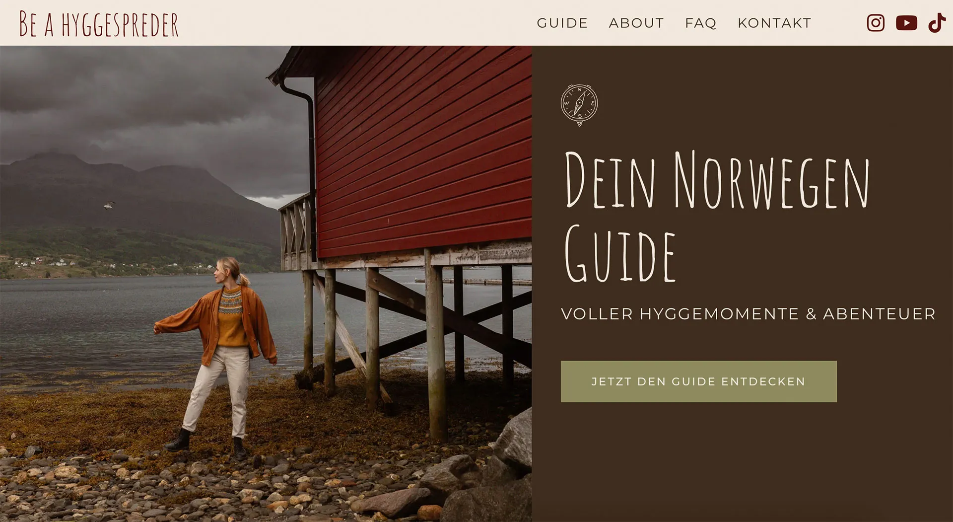 Eine Website, die ihren Guide in den Mittelpunkt stellt – Hygge-Vibe pur, mit dem Herz auf der richtigen Seite.