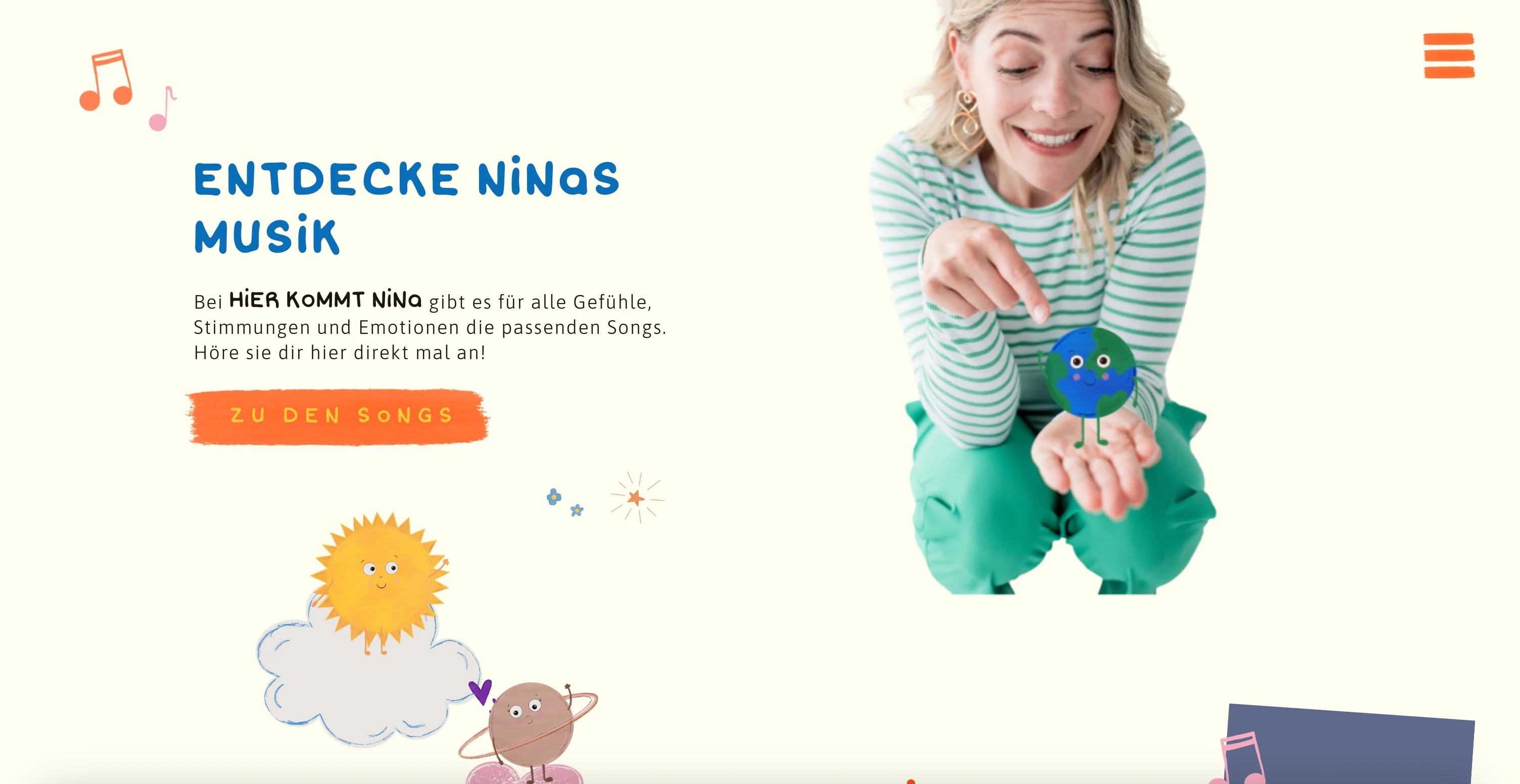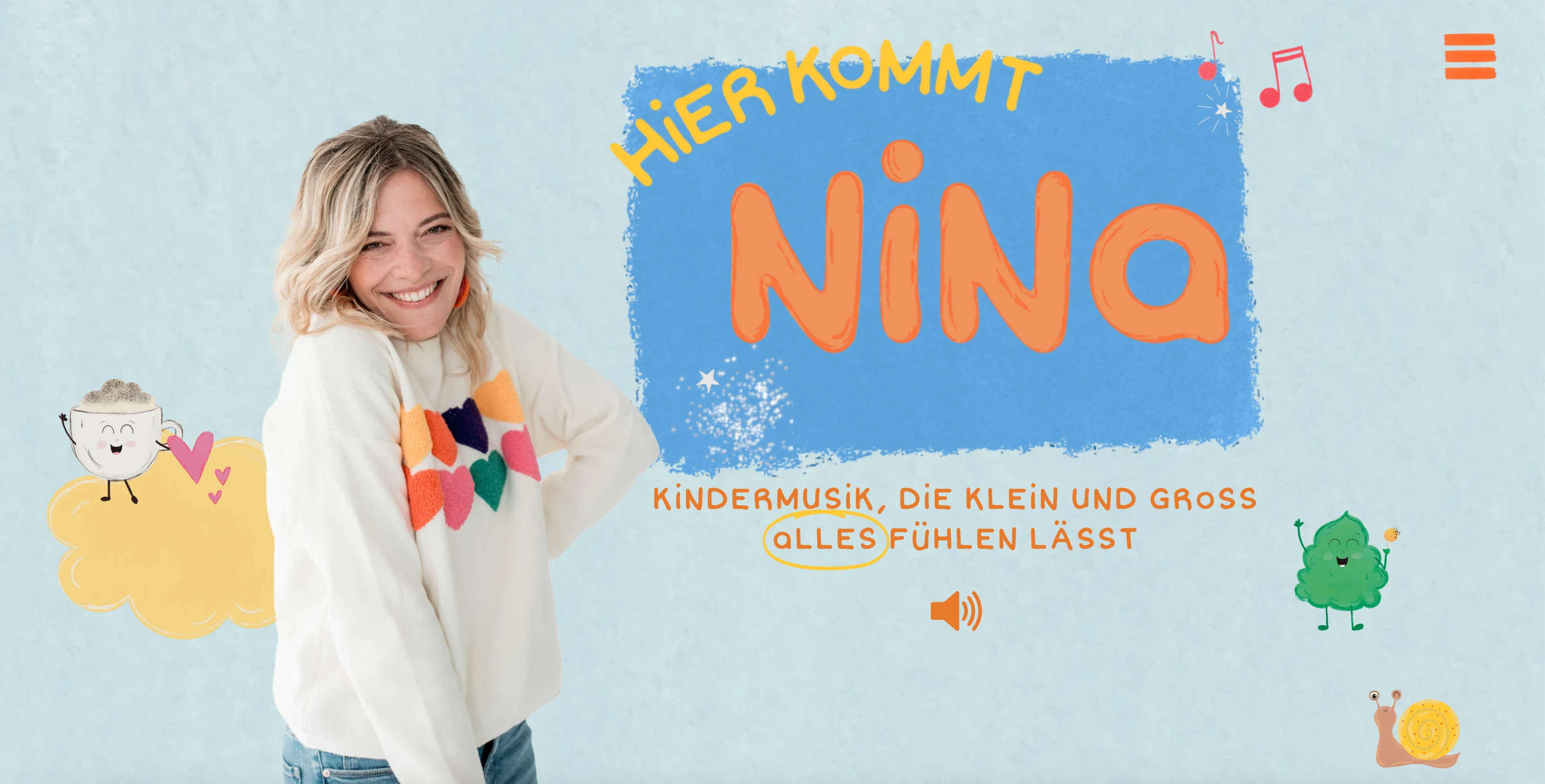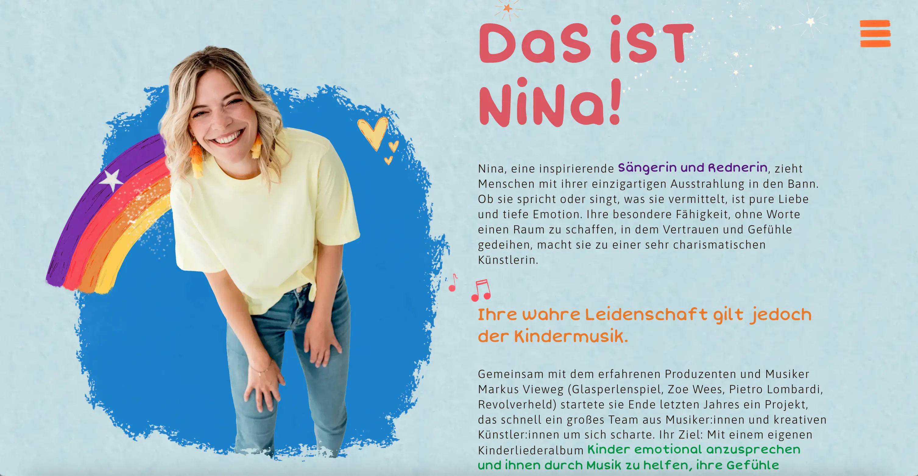 Nina begeistert als Kinderliedersängerin – mit Leichtigkeit, Kreativität und echter Lebensfreude. Was fehlte: ein Online-Zuhause, das ihre Welt so einzigartig einfängt wie sie selbst.